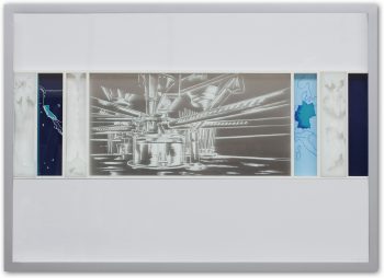 Objektrahmen, Hinterglasmalerei mit weißer Tusche; 110 x 70 cm