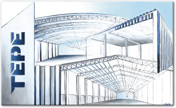 Betonrahmen mit bemalten Leinwänden; 130 x 100 cm, 50 x 100 cm und 50 x 175 cm